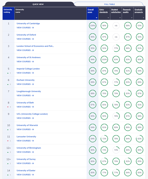 2024年5月14日,完全大学指南(CUG)发布最新英国大学综合排名、各专业排名。